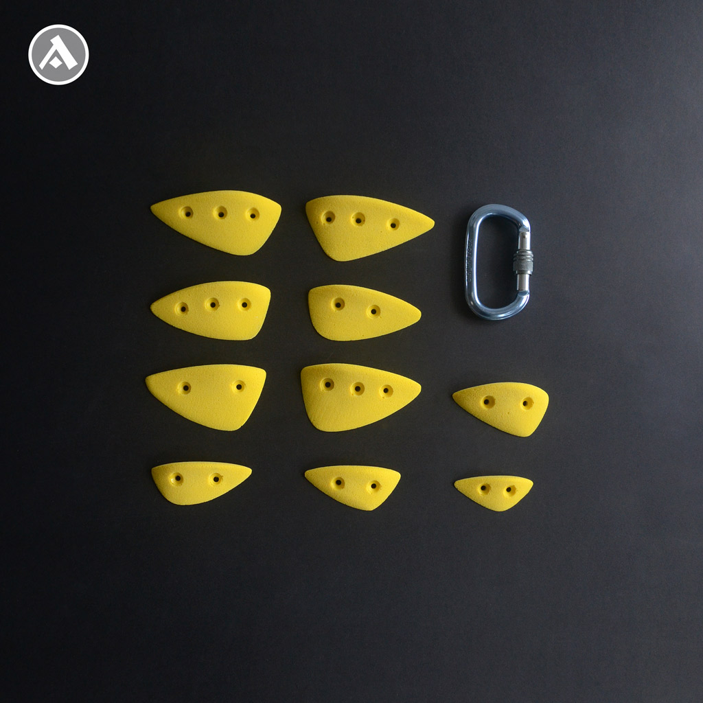 They are mainly used as footholds and are typically mounted on the lower part of the climbing wall. This type of hold is not recommended for children’s climbing walls, especially outdoor ones, where children do not use specialized climbing shoes.