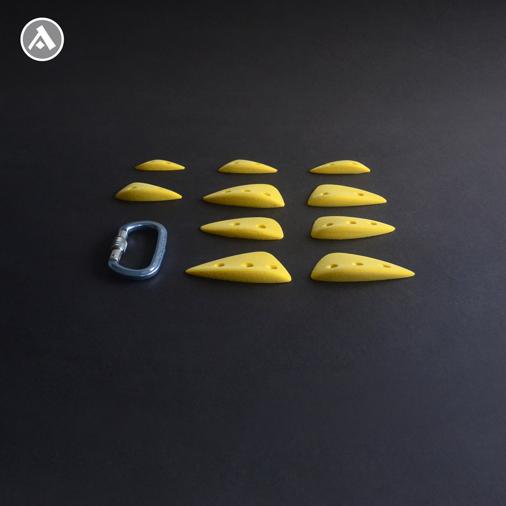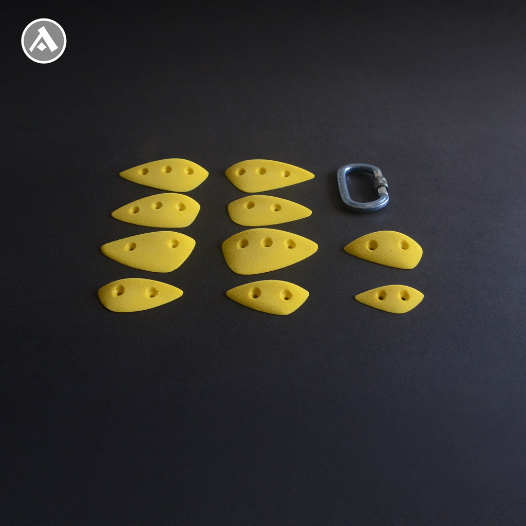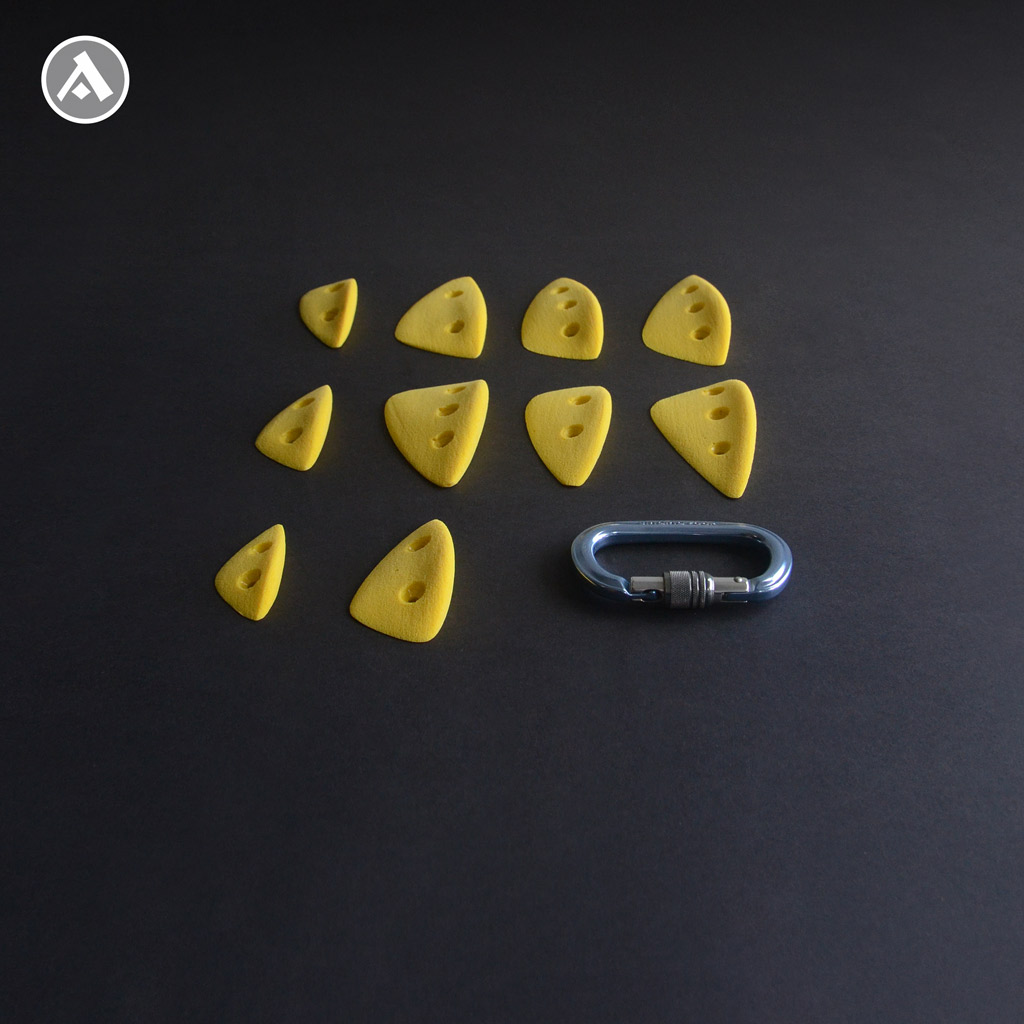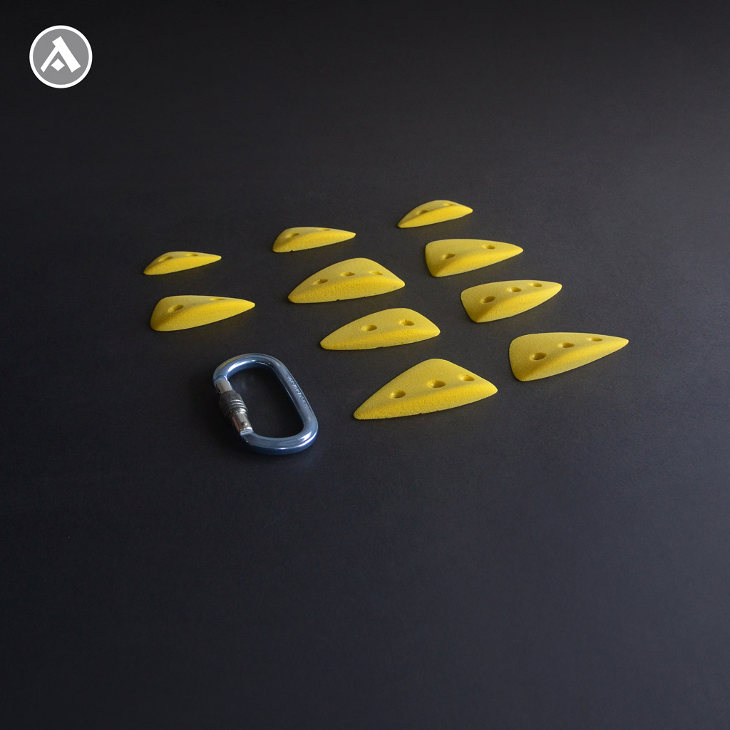 Screwers 2 are small climbing holds made of polyurethane. The set includes 10 pieces of approximately the same size.