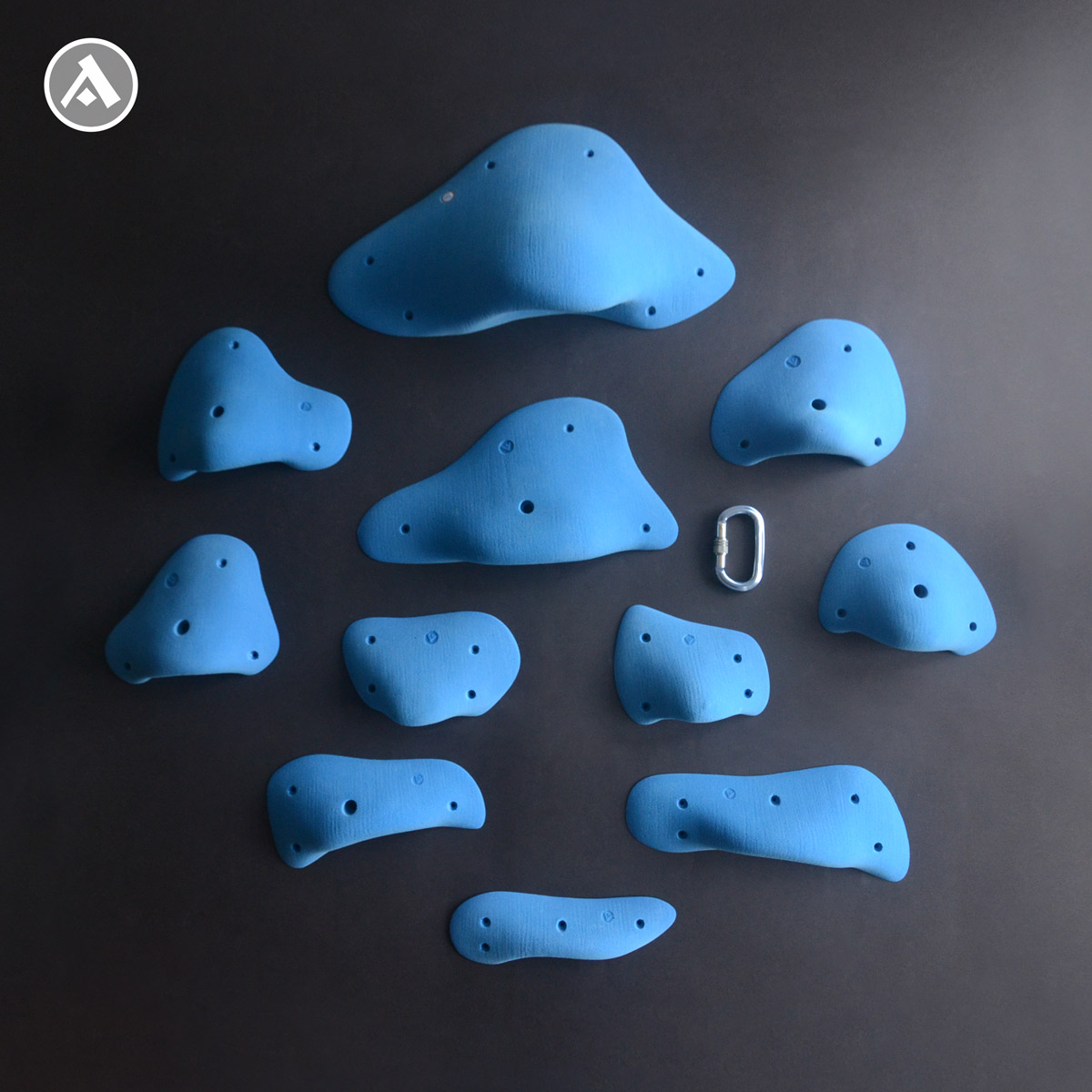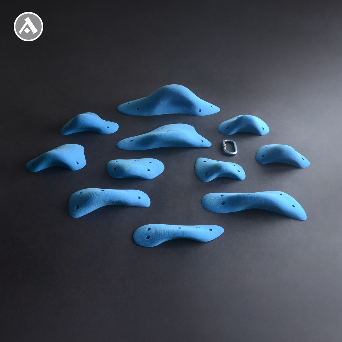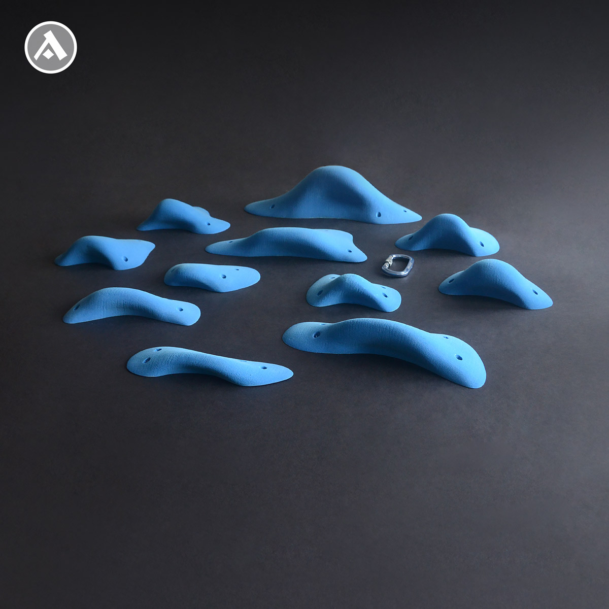 The full set allows you to build a complete boulder without adding other holds. It works well for lines with long moves, dynamic jumps, and more powerful climbing.