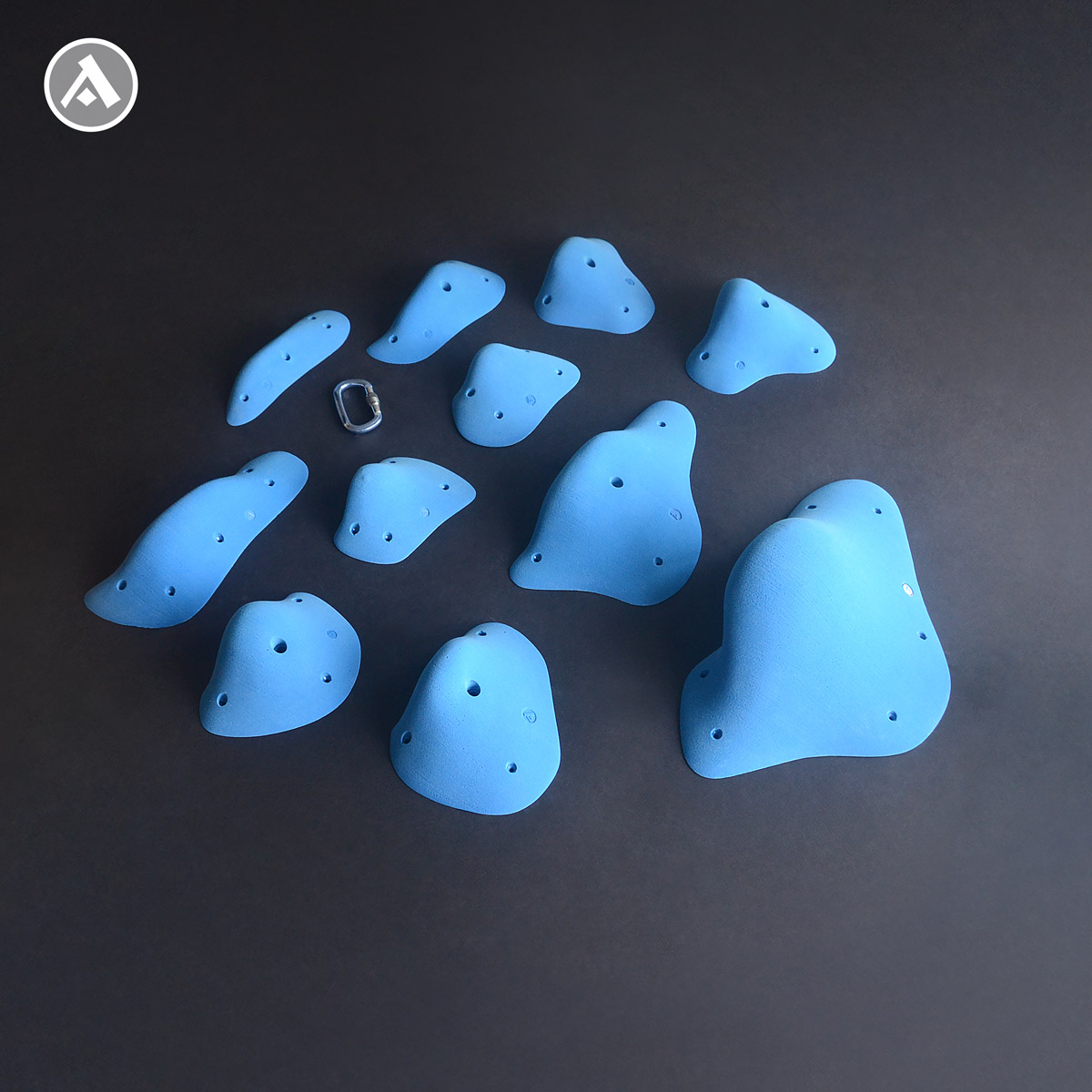 The set has a closely related counterpart in both design and style — the Sierra set. When combined, you get around 20 holds, making it possible to build longer and more continuous climbing routes, even on overhanging walls.