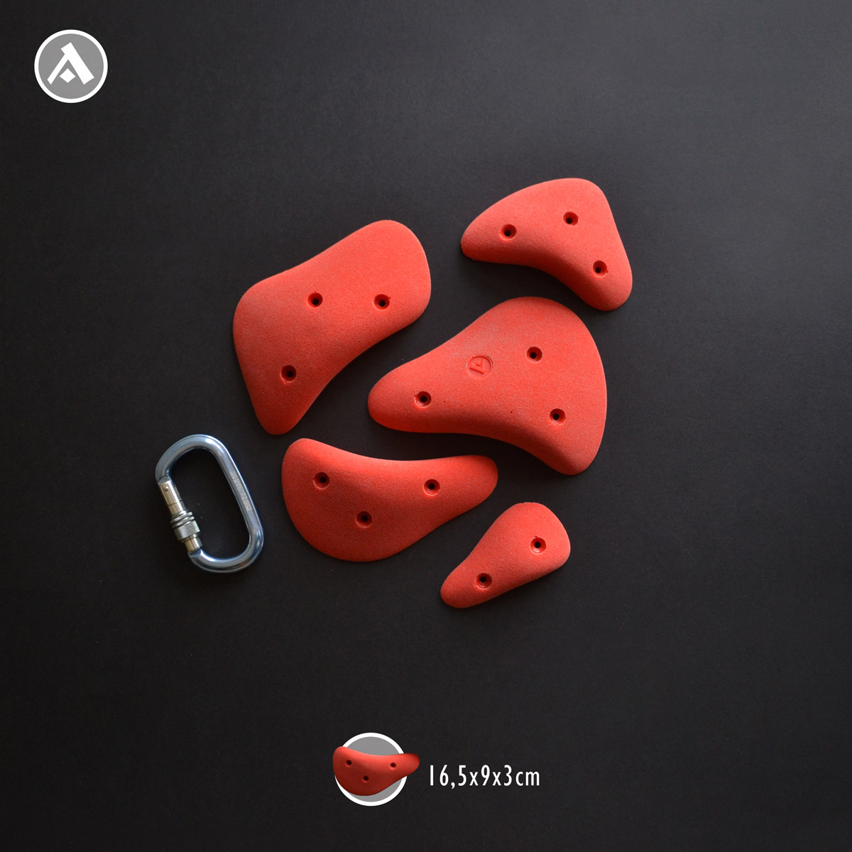 Steaks 4 is a set of climbing holds made of polyurethane. With grip-type slopers and edges, they are suitable for creating boulders and routes on climbing walls with an inclination of up to 30°. There are nine holds in the set: climbing level – medium.