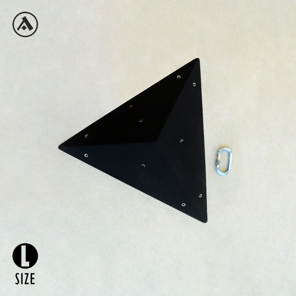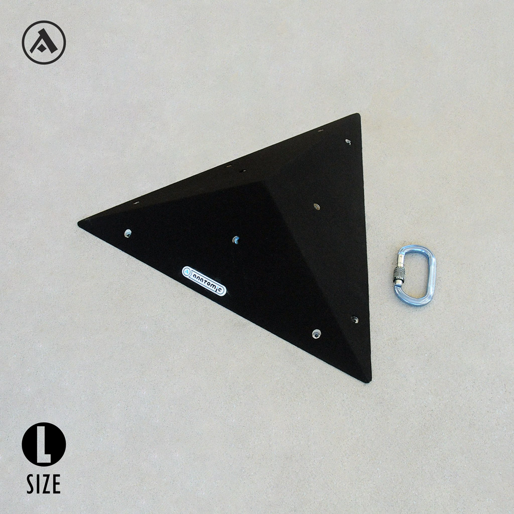Volume 20° is a classic, regular triangular volume found in many climbing gyms around the world. The L-size variant has a side length of 55 cm and a height of just 11.5 cm. All three surfaces are angled at 20° and are large enough to mount additional, smaller holds. This volume can also be used for technical sequences or transitional moves. It is available in four sizes, allowing for combinations across different sections of a climbing wall.