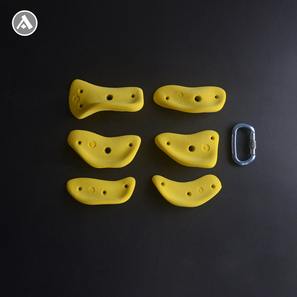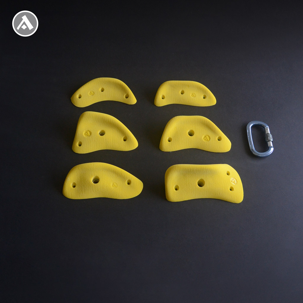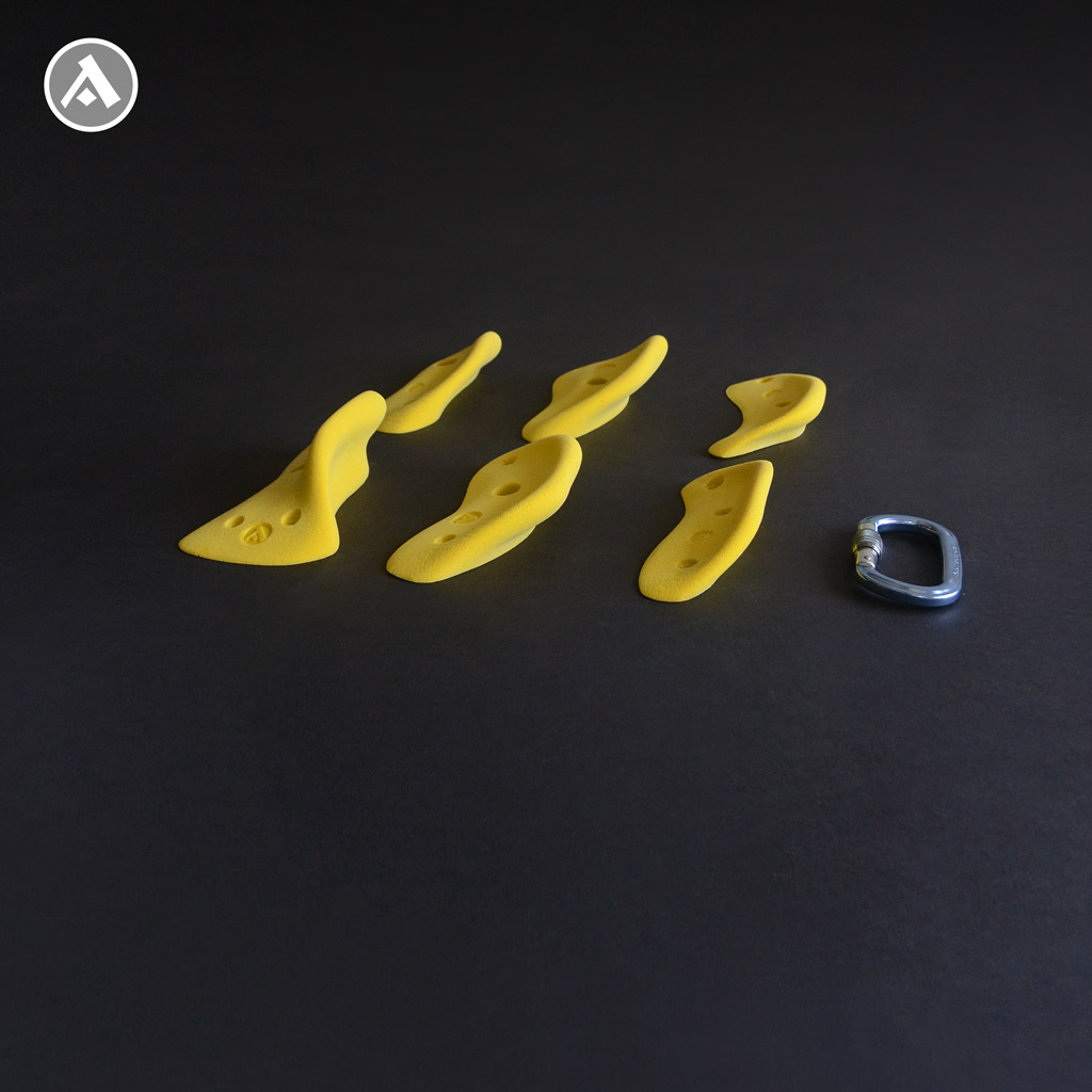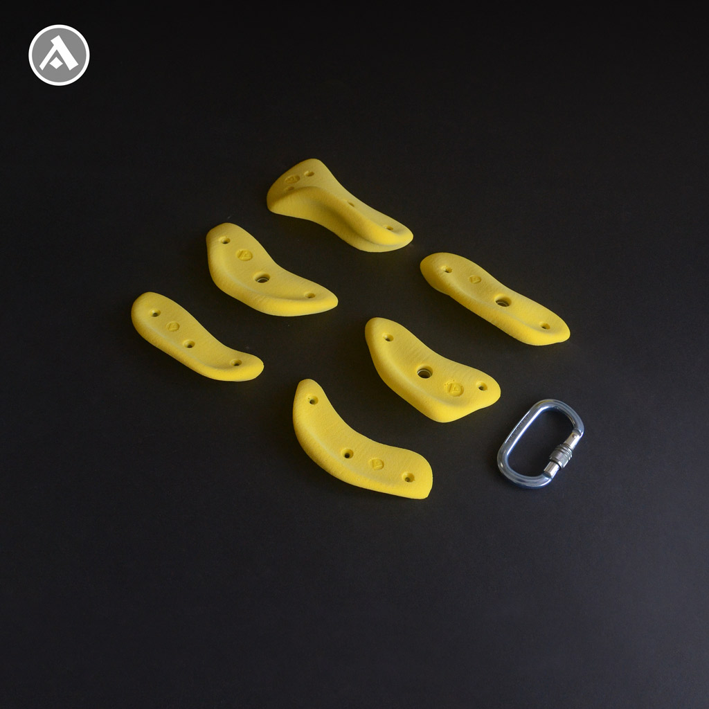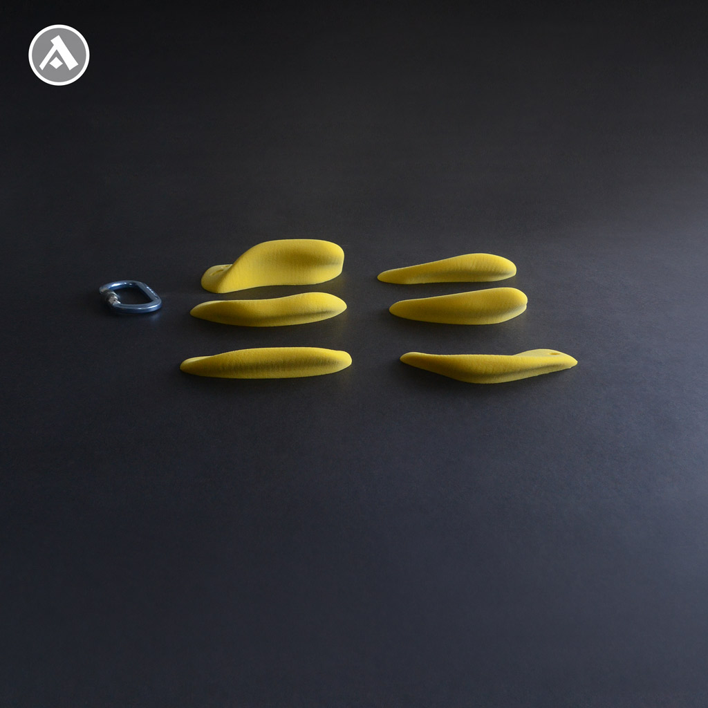 Sada lezeckých chytov Corals 4 obsahuje 6 kusov vo veľkostiach M a L.