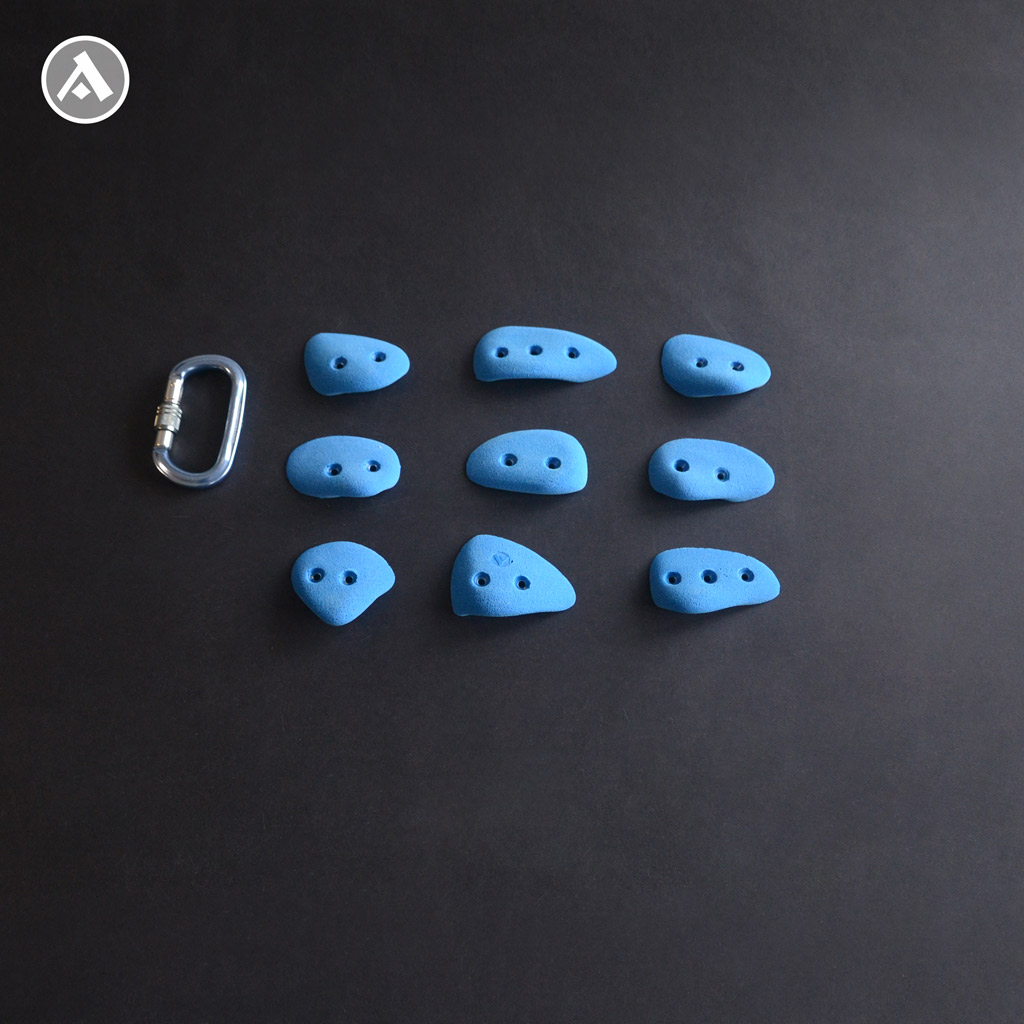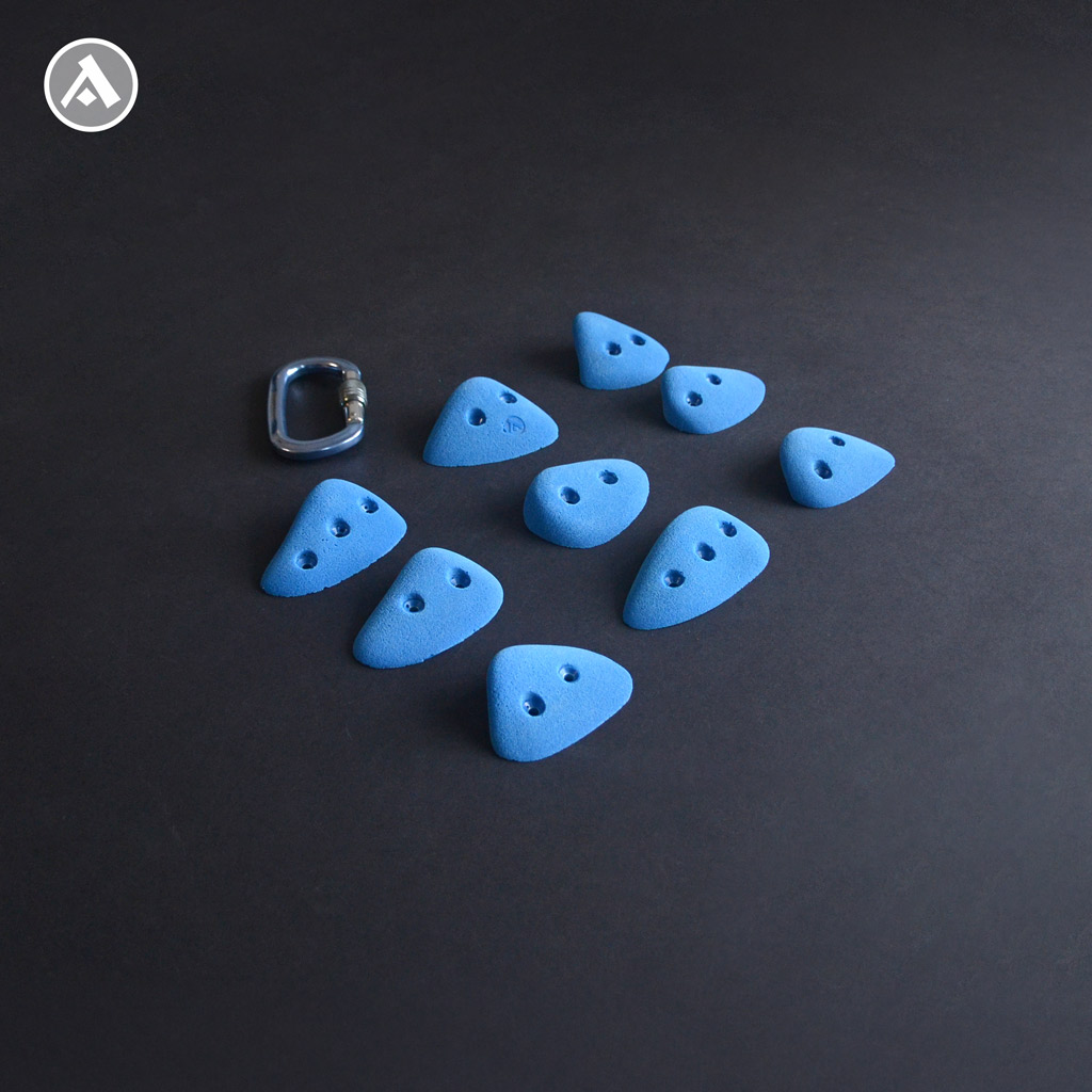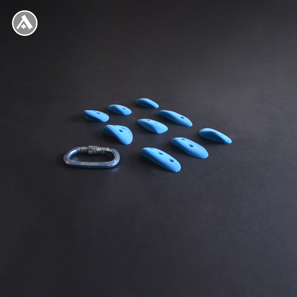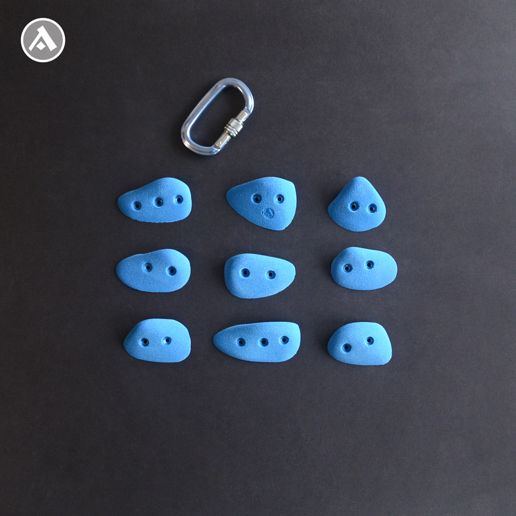 Sada obsahuje 9 takmer identických lezeckých chytov s mini madielkom. Navrhnuté sú ako stupy, no môžu fungovať aj ako mini chyt v technických boudlroch, na tréning rovnováhy, prácu nôh a prstovky. Montáž pomocou skrutiek do dreva.