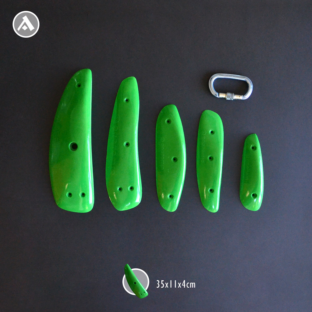Spaghetti 5 DUAL sú lezecké chyty s duálnym povrchom vyrobené z polyuretánu. Sada obsahuje 5 kusov chytov. S typom úchopu lišty a obliny sú vhodné na zostavovanie ciest alebo bouldrov na lezeckých stenách so sklonom do 30°. Patria medzi stredne ťažké chyty na uchopenie. Na lezeckú stenu ich namontujete pomocou skrutiek do dreva.